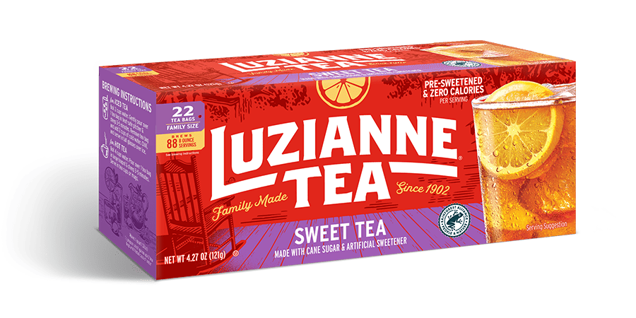 A pitcher of authentic Southern sweet iced tea is always refreshing and invigorating. Luzianne® Iced Sweet Tea is pre-sweetened with pure cane sugar and made with a carefully selected blend of orange pekoe and pekoe cut black teas.